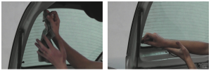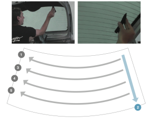Siempre con mucho cuidado de evitar cortar las líneas del desempañador.