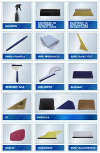 HERRAMIENTAS NECESARIAS PARA REALIZAR EL PEGADO DEL FILM EN LA LUNETA