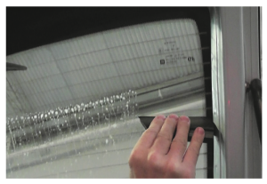 1. Escurrimos el agua alojada entre el film y el vidrio.