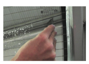 Repetimos la acción 1 pasando el escurridor; apoyándolo al vidrio en posición vertical de izquierda a derecha (o inversamente) en escurridas horizontales de arriba hacia abajo hasta el final del vidrio.