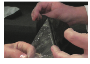 Despegamos el protector; comenzando desde un extremo de la lámina. La ayuda de un asistente, facilitaría esta parte del trabajo.